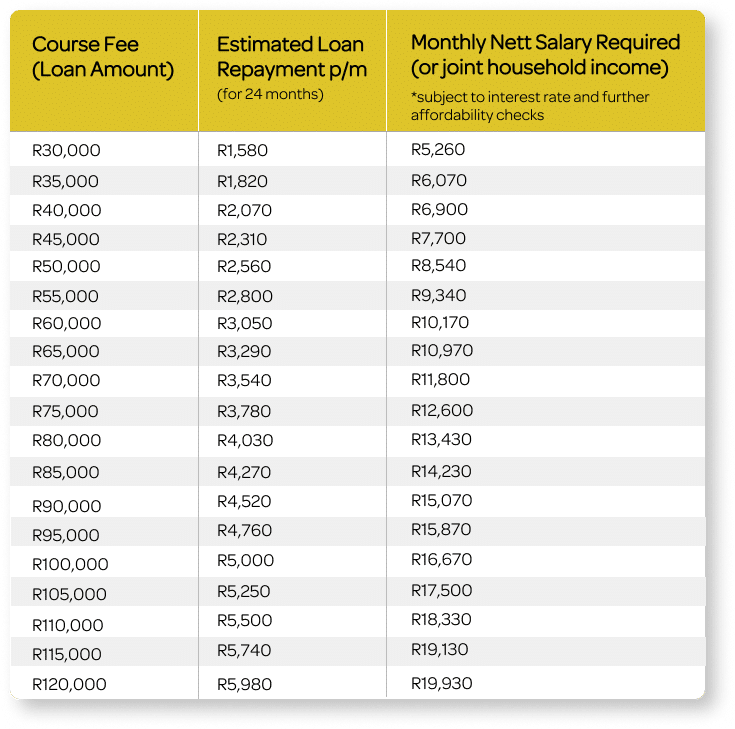 - Flexible repayment period: typically double your course duration, making monthly repayments manageable.